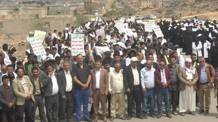 نظّمت جامعة البيضاء اليوم وقفة احتجاجية واسعة تنديدًا بالجرائم التي يرتكبها الاحتلال الصهيوني في قطاع غزة، من قتل وتجويع للشعب الفلسطيني، مؤكدين دعمهم للقضية الفلسطينية والمجاهدين في غزة، وتأييدهم للقوات المسلحة اليمنية.