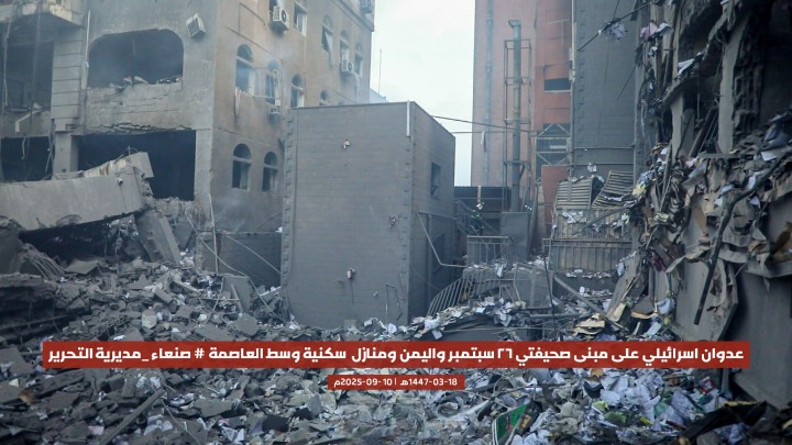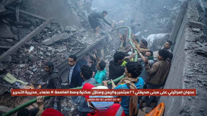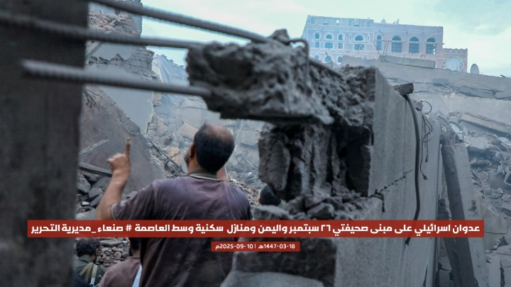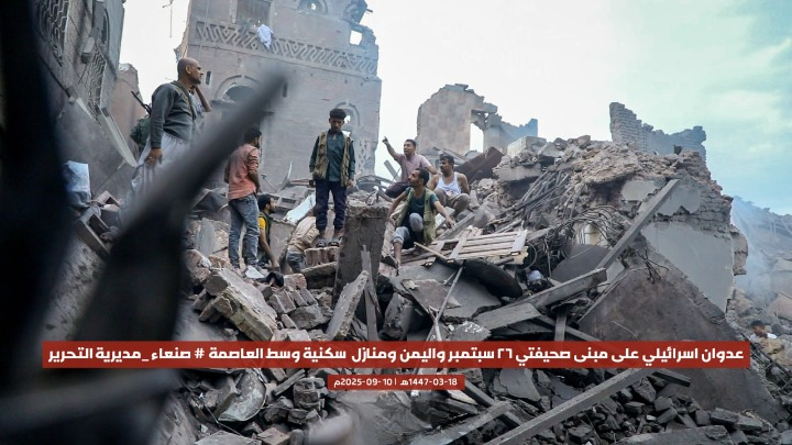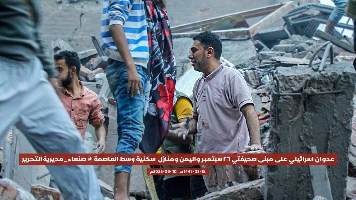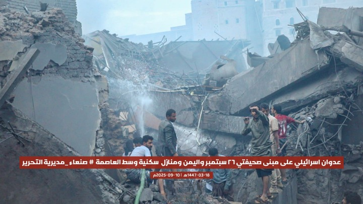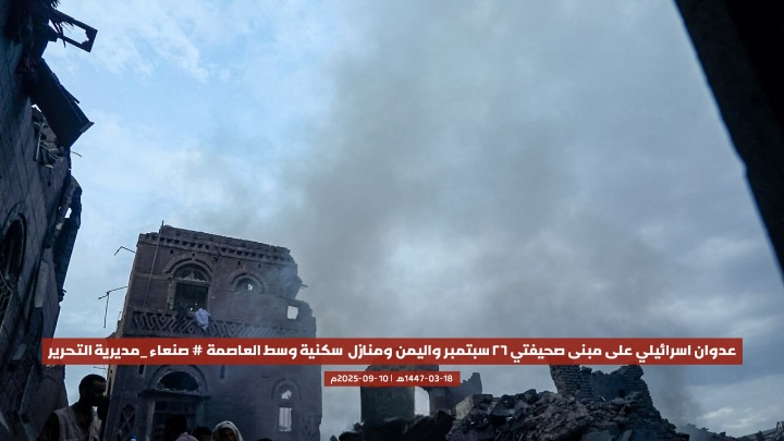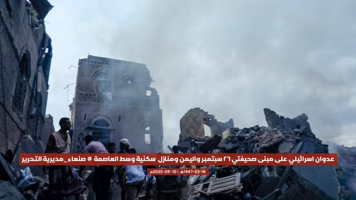 قصفت طائرات الاحتلال الإسرائيلي، اليوم، مبنى صحيفتي “26 سبتمبر” و”اليمن”، إضافة إلى عدد من المنازل السكنية، في مديرية التحرير وسط العاصمة صنعاء، ما أسفر عن أضرار مادية كبيرة دون ذكر تفاصيل عن خسائر بشرية حتى اللحظة.