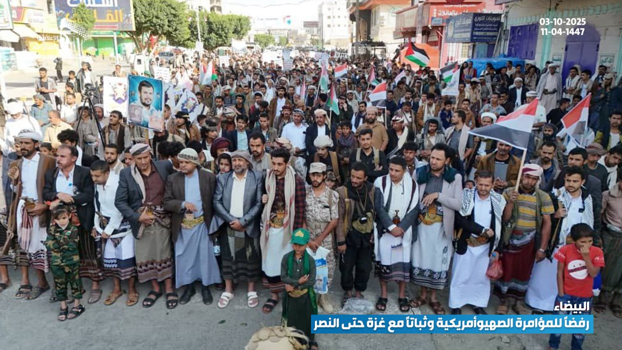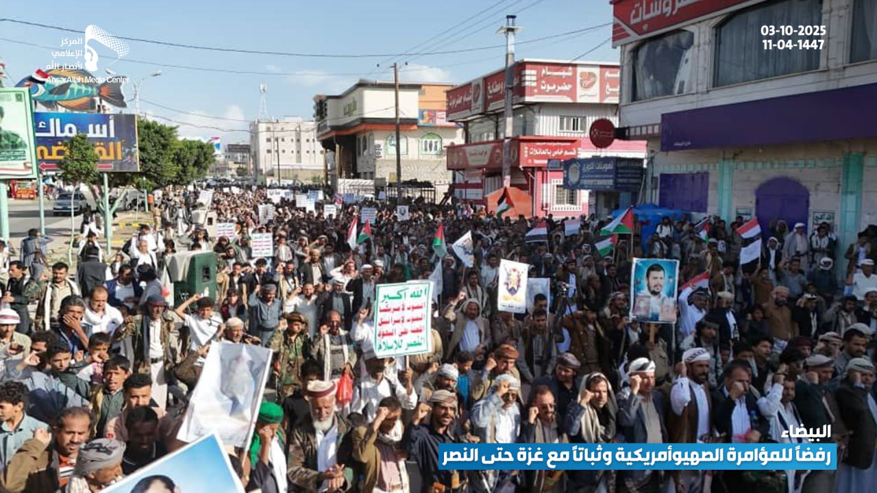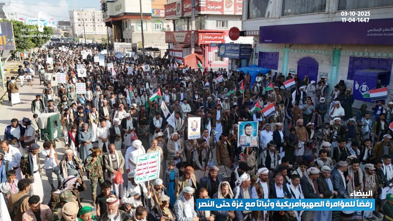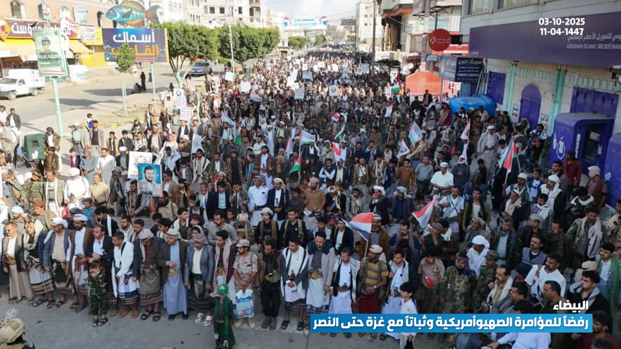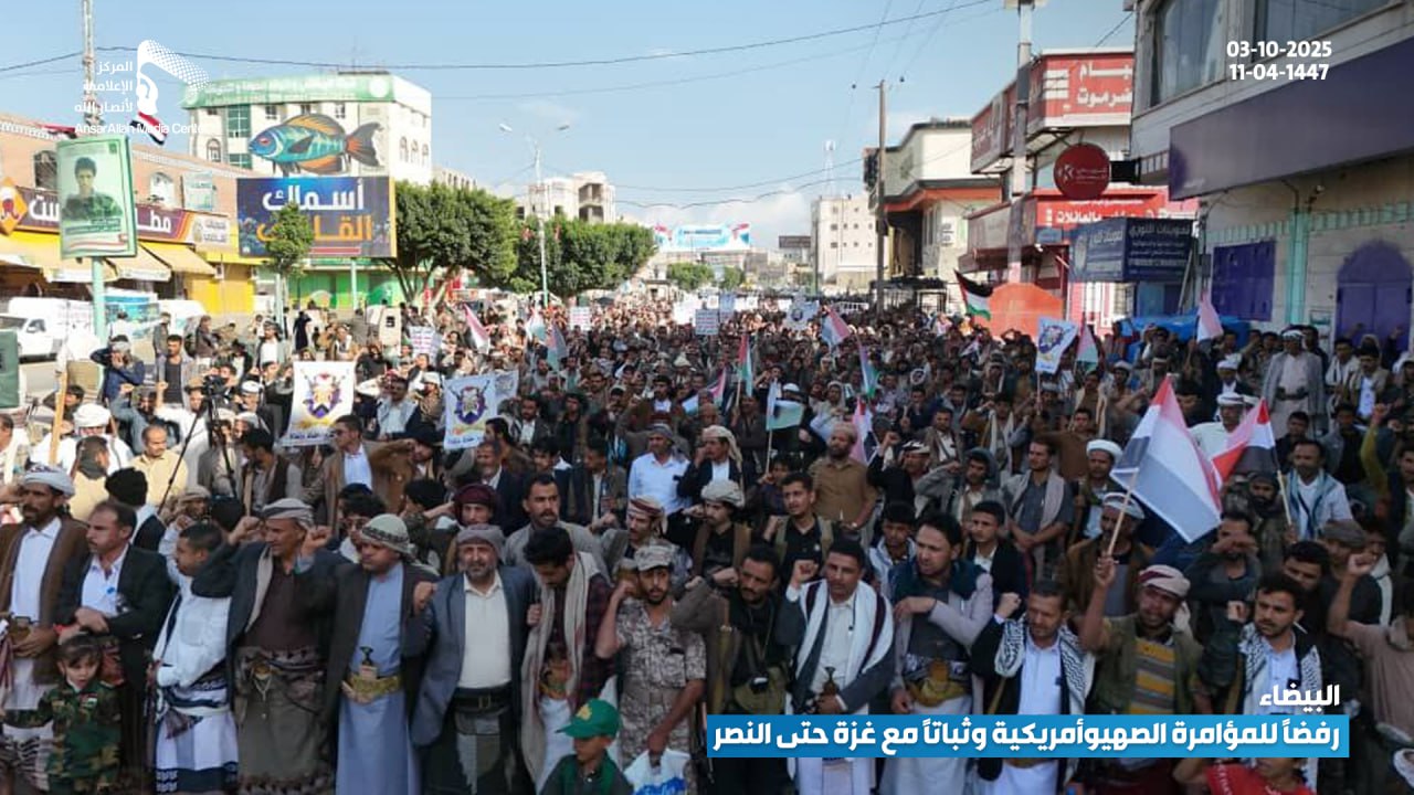 حشود جماهيرية حاشدة في البيضاء تؤكد رفضها للمؤامرة الصهيوأمريكية وتجدّد عهدها بالثبات مع غزة حتى النصر البيضاء نت | صور #لستم_وحدكم#نرفض_خطة_ترامب Share FacebookTwitterGoogle+ReddItWhatsAppPinterestEmail