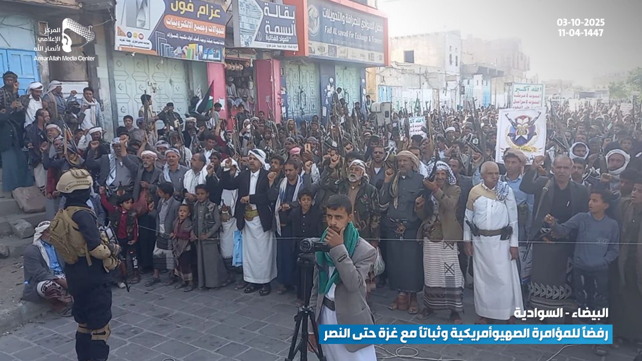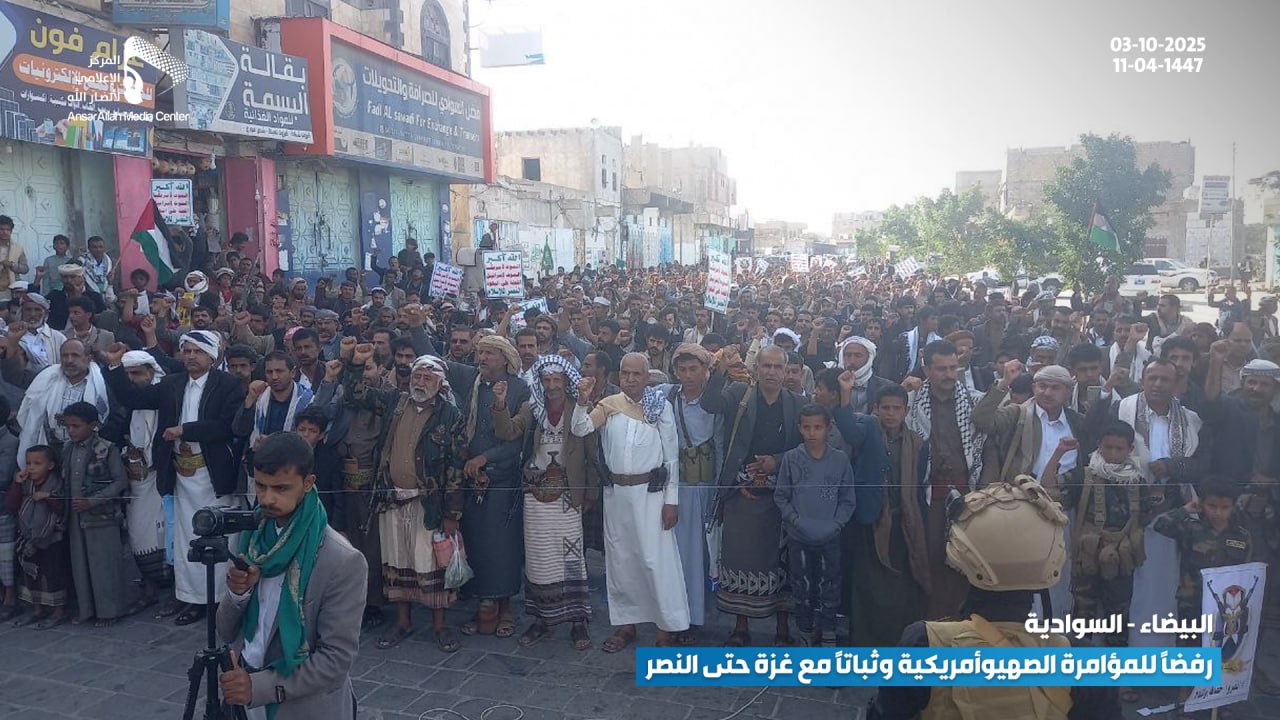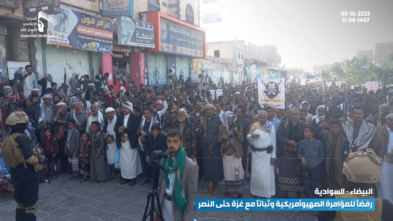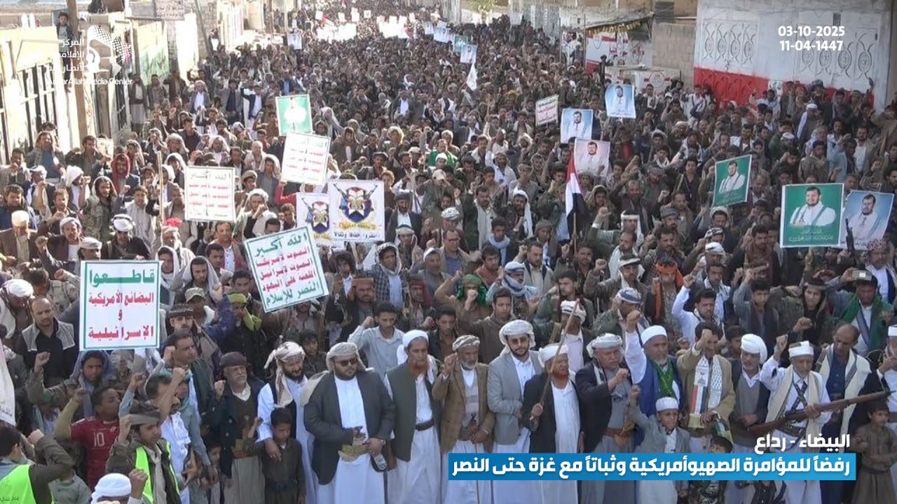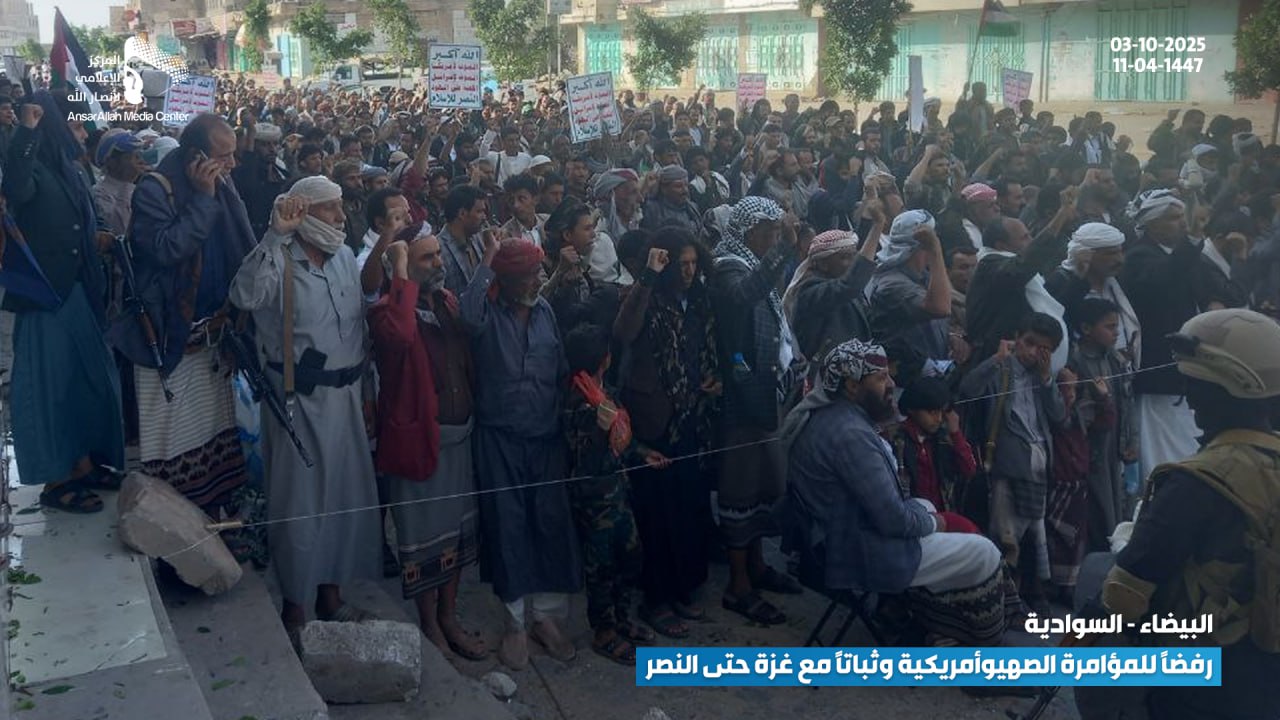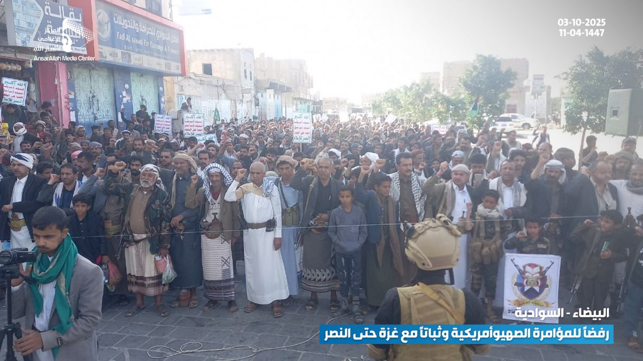 حشود جماهيرية حاشدة في البيضاء تؤكد رفضها للمؤامرة الصهيوأمريكية وتجدّد عهدها بالثبات مع غزة حتى النصر البيضاء نت | صور #لستم_وحدكم#نرفض_خطة_ترامب Share FacebookTwitterGoogle+ReddItWhatsAppPinterestEmail