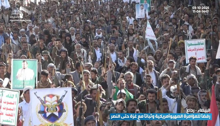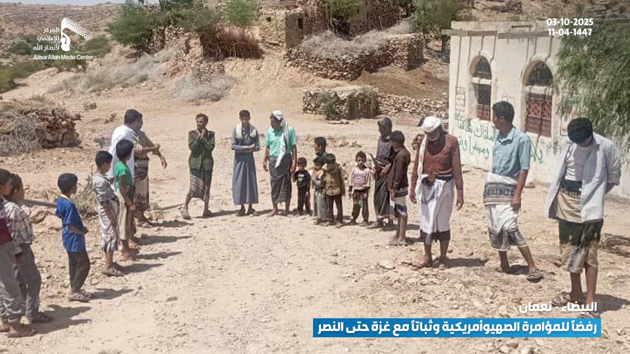 حشود جماهيرية حاشدة في البيضاء تؤكد رفضها للمؤامرة الصهيوأمريكية وتجدّد عهدها بالثبات مع غزة حتى النصر