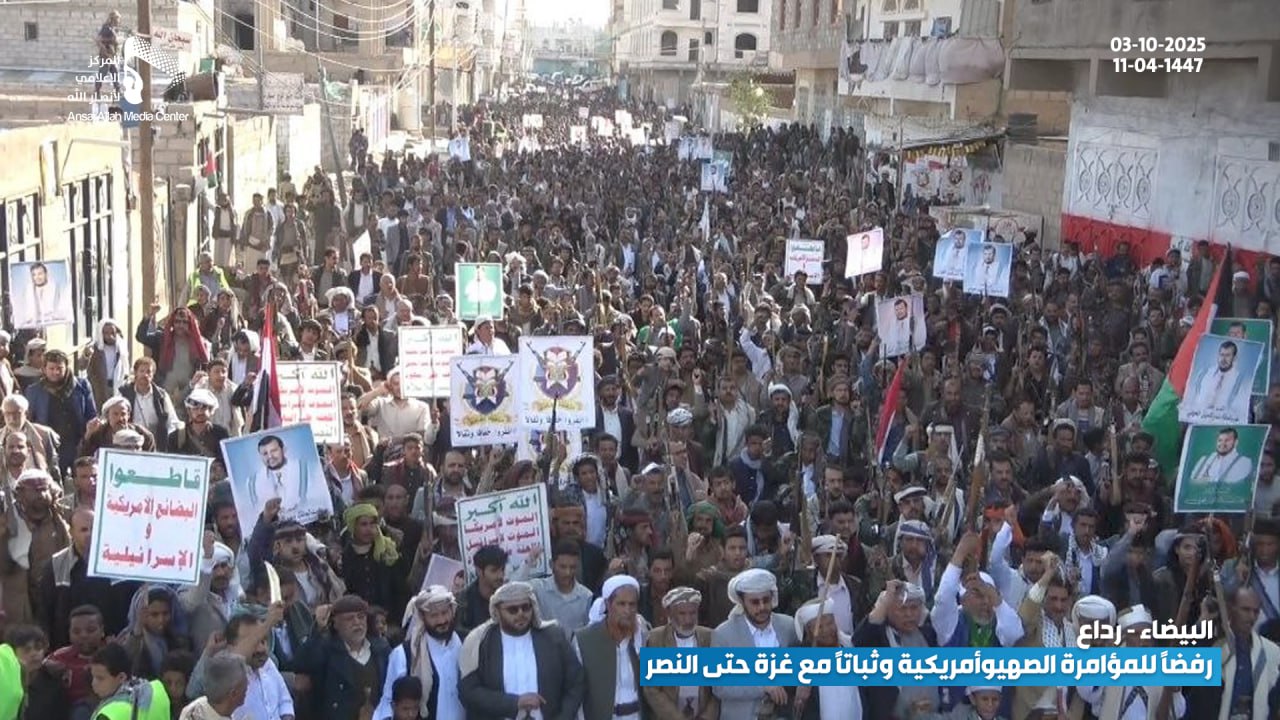 • حشود جماهيرية حاشدة في البيضاء تؤكد رفضها للمؤامرة الصهيوأمريكية وتجدّد عهدها بالثبات مع غزة حتى النصر
