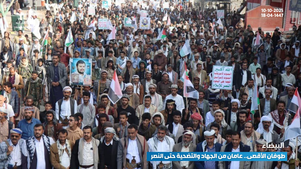 بالصور| مسيرات جماهيرية في البيضاء إحياءً للذكرى الثانية لطوفان الأقصى وتأكيداً على الثبات في مواجهة العدوان ودعم الشعب الفلسطيني البيضاء نت | صور #غزة_تنتصر#يمن_الواثقين_بالله Share FacebookTwitterGoogle+ReddItWhatsAppPinterestEmail
