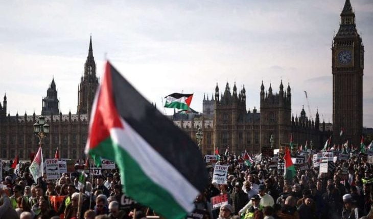 شهدت شوارع العاصمة البريطانية لندن مشاركة جماهيرية هائلة، حيث تظاهر مئات الآلاف تضامناً مع الشعب الفلسطيني عقب الاتفاق الأخير في قطاع غزة. ورفع المتظاهرون لافتات وشعارات تدعو إلى دعم القضية الفلسطينية ووقف العدوان، مؤكدين على أهمية التضامن الدولي مع غزة.