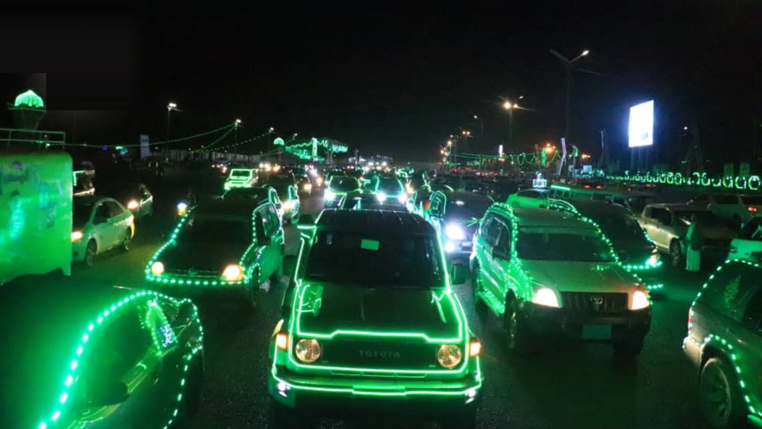 نظم مكتب جمارك ورقابة صنعاء مسيرة ضوئية بعشرات السيارات احتفالاً بذكرى مولد النبي محمد عليه وعلى آله أفضل الصلاة وأتم التسليم ..