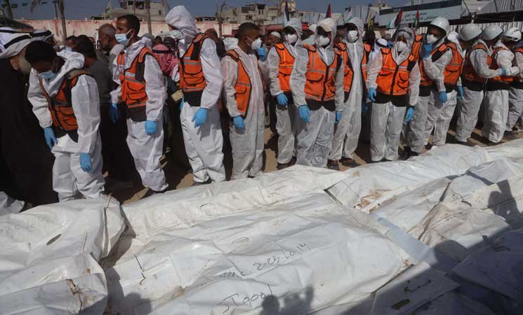بالصور: دون ملامح… بدء دفن 54 جثمانًا لفلسطينيين أعادتهم إسرائيل إلى غزة