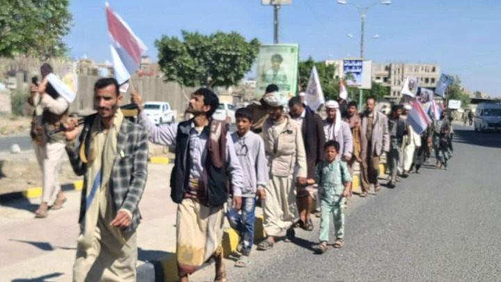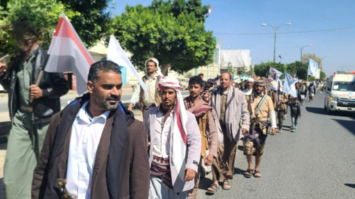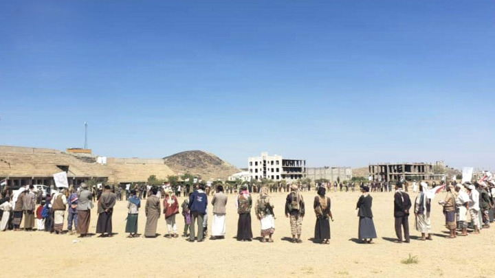 شهدت مديرية ريف البيضاء اليوم فعالية قبلية مسلحة ومسيراً لخريجي الدورات العسكرية تحت مسمى «دفعة الشهيد محمد الغماري»، بمشاركة قيادات محلية وعسكرية، وتحت شعار «على درب الشهيد الغماري… عامان من الجهاد والتضحية حتى النصر». وأكد المشاركون جاهزيتهم القتالية واستعدادهم لمساندة القوات المسلحة في ما وصفوه بمعركة «الفتح الموعود والجهاد المقدس».