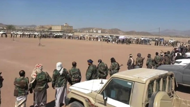 نظّم أبناء مديرية العرش بمحافظة البيضاء وقفة قبلية مسلحة، جدّدوا خلالها الوفاء للشهداء والثبات على الموقف الوطني والإيماني، مؤكدين الجهوزية لمواجهة مخططات الأعداء والعملاء.