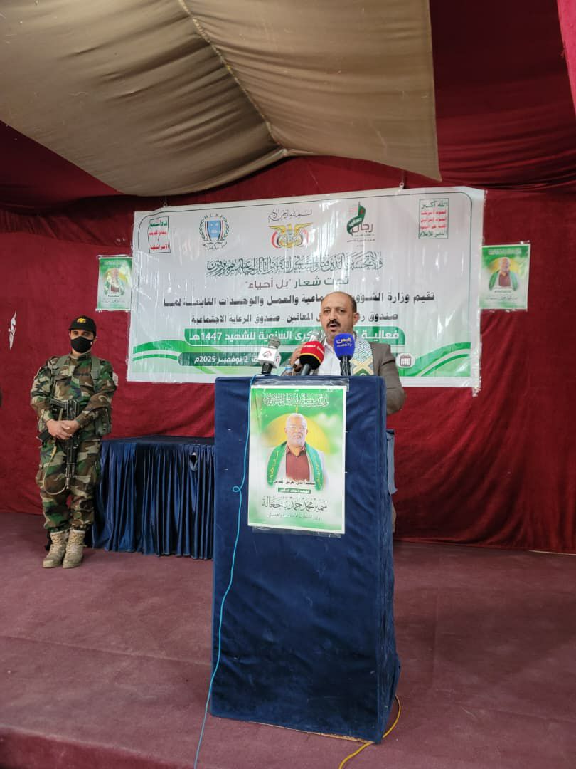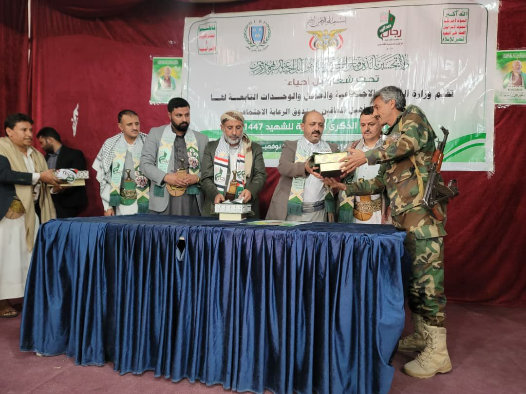 نظّمت وزارة الشؤون الاجتماعية والعمل اليوم بصنعاء فعالية تحت شعار “بل أحياء”، لإحياء الذكرى السنوية للشهيد للعام 1447هـ، تكريماً لتضحيات أبنائنا الأبطال الذين قدموا أرواحهم دفاعاً عن الدين والوطن والكرامة.