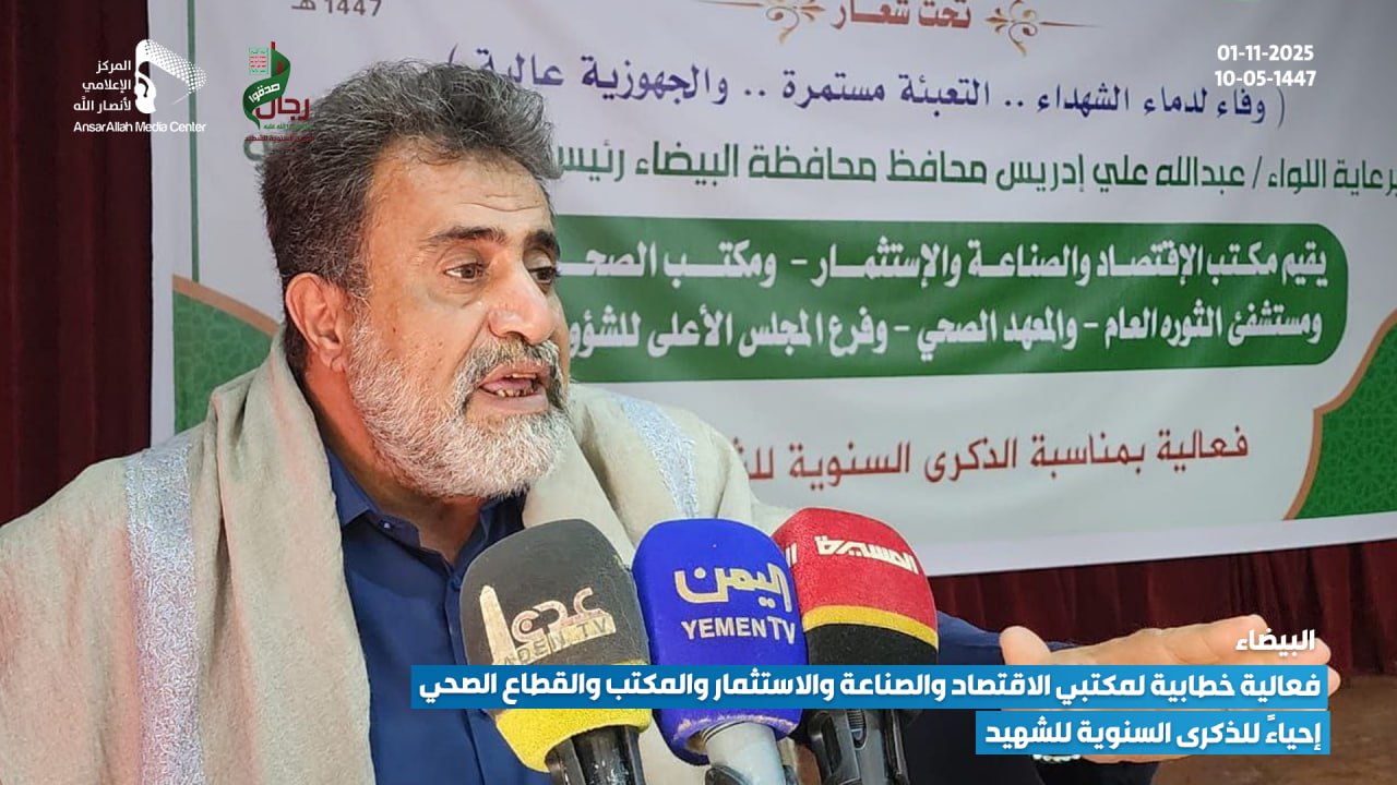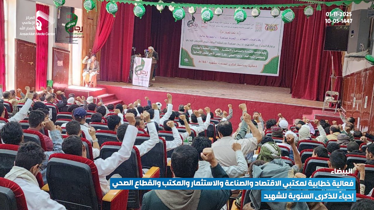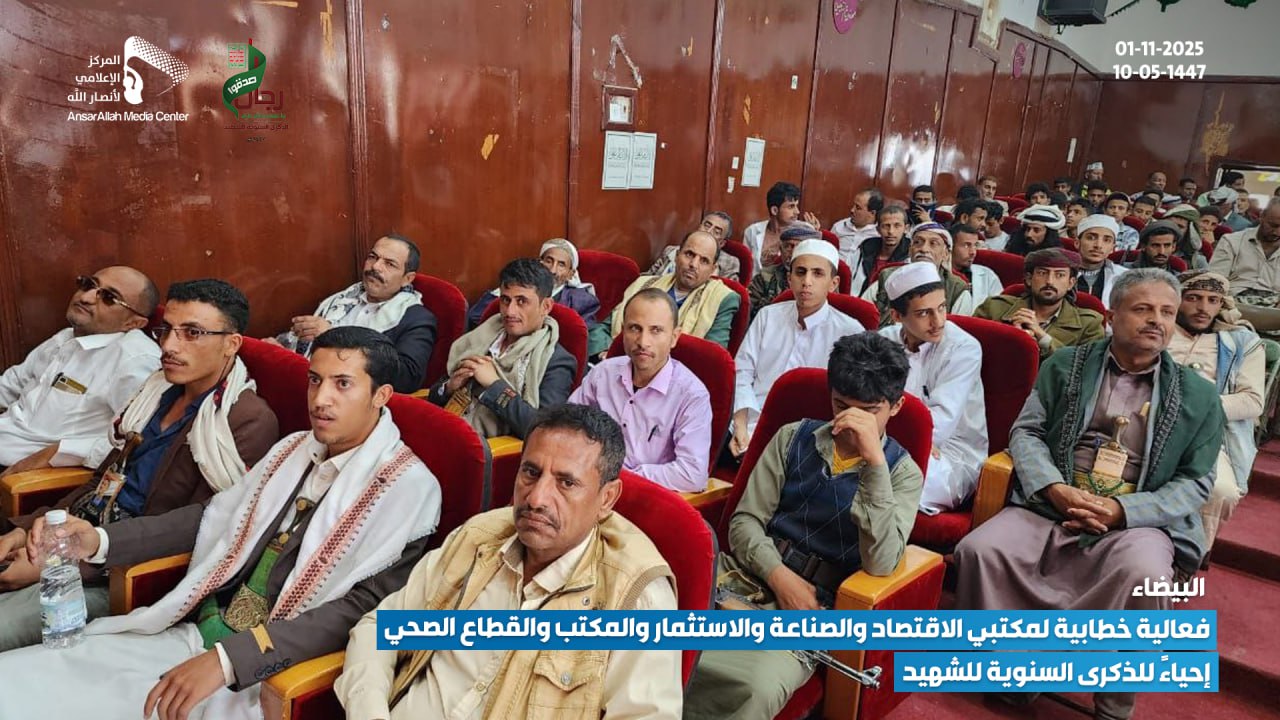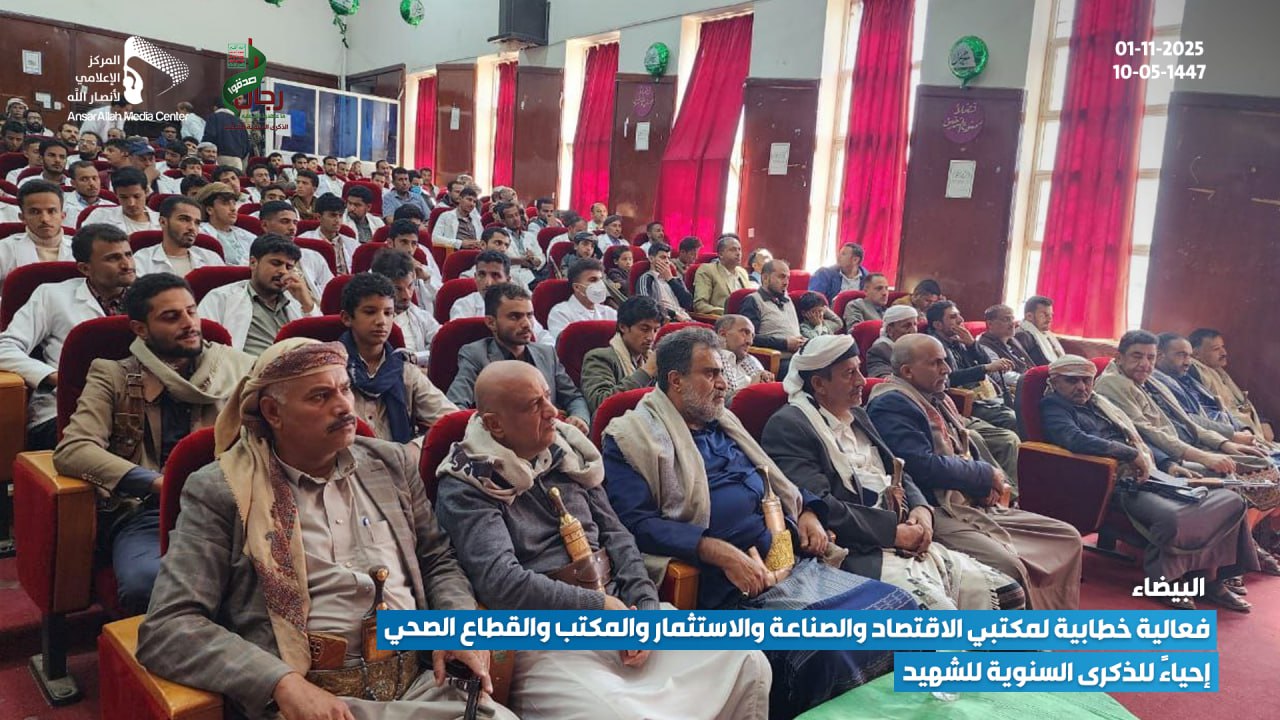 أقام مكتبا الاقتصاد والصناعة والاستثمار، ومكتب الصحة والقطاع الصحي في محافظة البيضاء فعالية خطابية مميزة، إحياءً للذكرى السنوية للشهيد، وذلك بتاريخ 10-05-1447هـ الموافق 01-11-2025م.