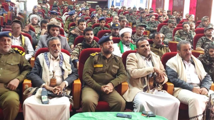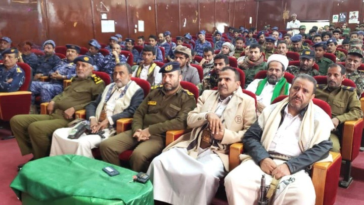 من جهته، استعرض رئيس عمليات قوات الأمن المركزي بالمحافظة، المقدم محمد الذاهبي، التضحيات الجسيمة التي قدمها شهداء الوطن في مختلف الجبهات، من بينهم عدد من القادة والرموز الوطنية، آخرهم رئيس هيئة الأركان اللواء الغماري، مؤكداً أنهم جسدوا أسمى معاني التضحية في سبيل الدفاع عن الوطن ونصرة القضية الفلسطينية. كما تطرق إلى المكانة الرفيعة للشهداء في الجنة، مستشهداً بآيات قرآنية وأحاديث نبوية تؤكد فضل الشهادة وعظمة التضحية في سبيل الله والدفاع عن الوطن والمقدسات.