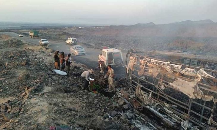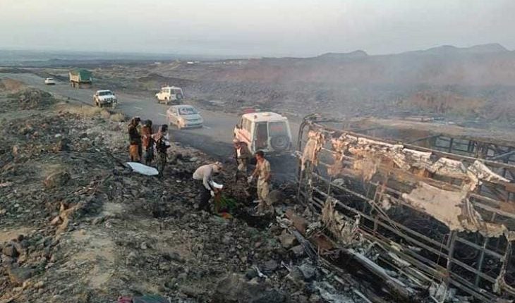 مأساة في أبين: وفاة أكثر من 30 راكبًا إثر احتراق حافلة جماعية وسط مطالب بتحقيق فوري ومحاسبة المسؤولين