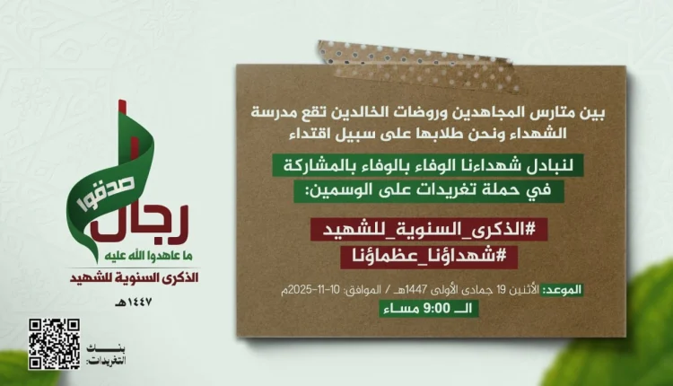 📢 المنظمون يدعون الجميع للمشاركة الواسعة، لإظهار الوفاء للشهداء والاقتداء بمبادئهم، وجعل أصواتهم تتردد في كل مكان. كل تغريدة هي رسالة وفاء وعهد استمرار على درب الشهداء.