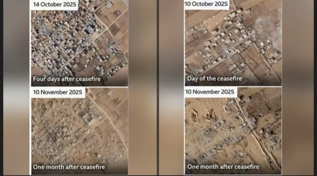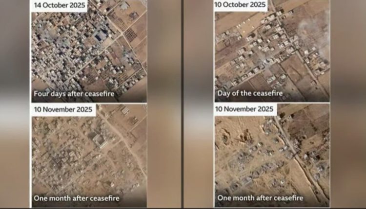 أظهرت صور أقمار صناعية تدمير الجيش الإسرائيلي لمئات المباني في مناطق خاضعة لسيطرته داخل قطاع غزة، منذ دخول اتفاق وقف إطلاق النار حيز التنفيذ في 10 أكتوبر الماضي.