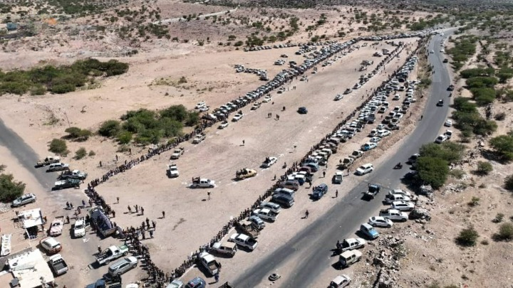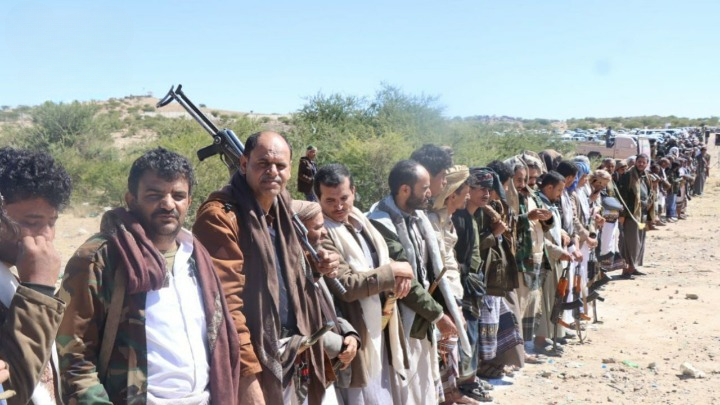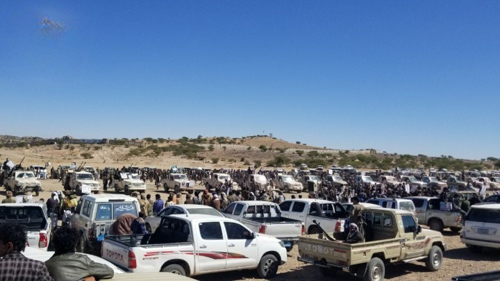 وجاء إعلان النفير خلال وقفة قبلية مسلحة شارك فيها محافظ البيضاء عبدالله إدريس ووكلاء المحافظة وعدد من القيادات العسكرية والأمنية، حيث أكدت القبائل استمرار التعبئة والاستعداد لأي جولة قادمة من الصراع، والتزامها بالدفاع عن الوطن ودعم القضية الفلسطينية.