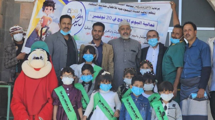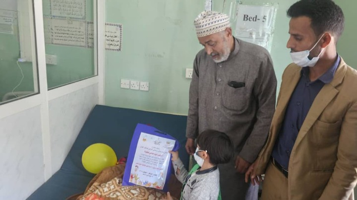 أطفال روضة الحياة يزورون مستشفى الثورة بالبيضاء لتوزيع الهدايا بمناسبة اليوم العالمي للطفل