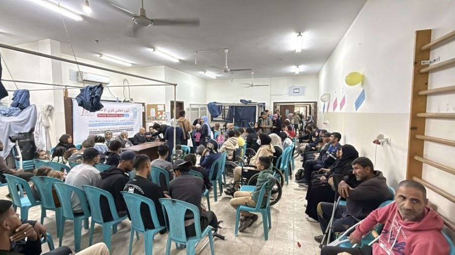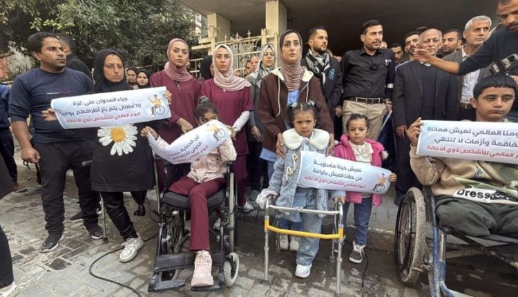 شارك عشرات الأطفال من ذوي الإعاقة، اليوم، في وقفة نظمتها جمعية التأهيل والتدريب الاجتماعي بمخيم النصيرات وسط قطاع غزة، إحياءً لـ”اليوم العالمي للأشخاص ذوي الإعاقة”.