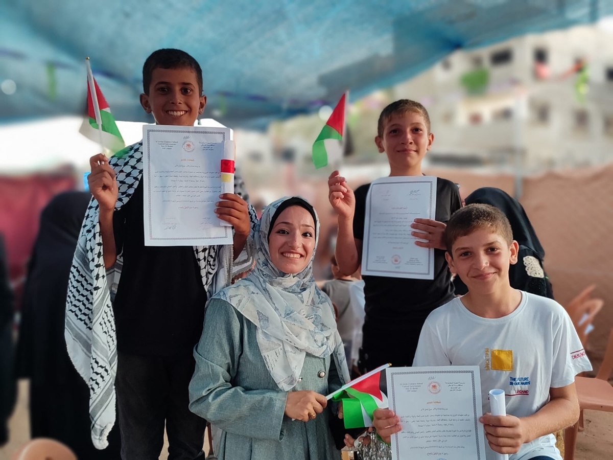 بالصور: مدارس الخيام تعيد إحياء التعليم في غزة بعد الدمار