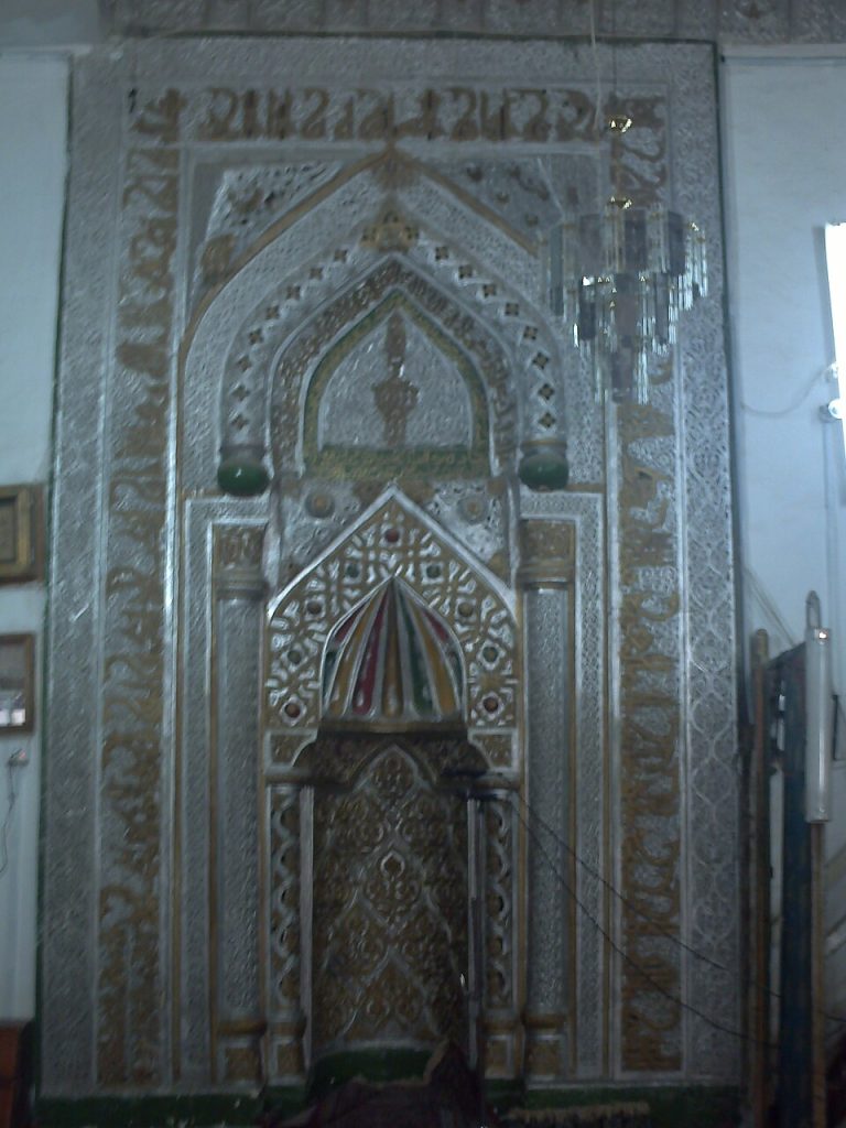 كما يزين الضريح -الواقع أيسر القبلة في منزل متصل بالجامع وكانت هي التي تولت عمارته وهيأت موضع ضريحها به ,- من الأعلى شريط كتابي نفذ بخط النسخ على أرضية حمراء وهو من أعمال