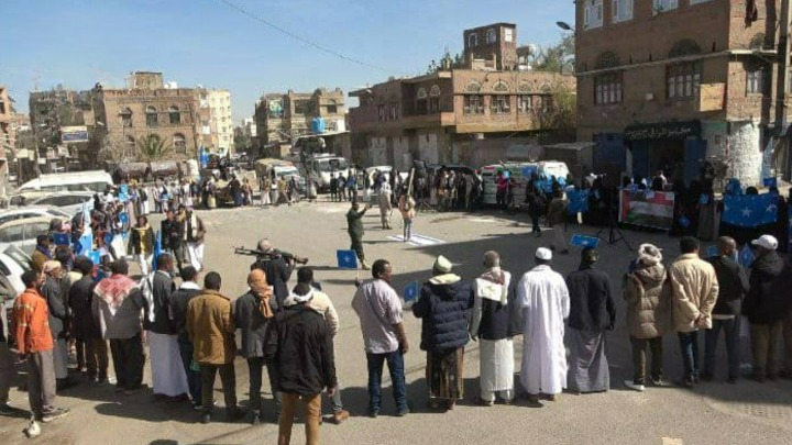 وقفة احتجاجية للجالية الصومالية بصنعاء تنديدًا باعتراف الكيان الصهيوني بجزء من الصومال