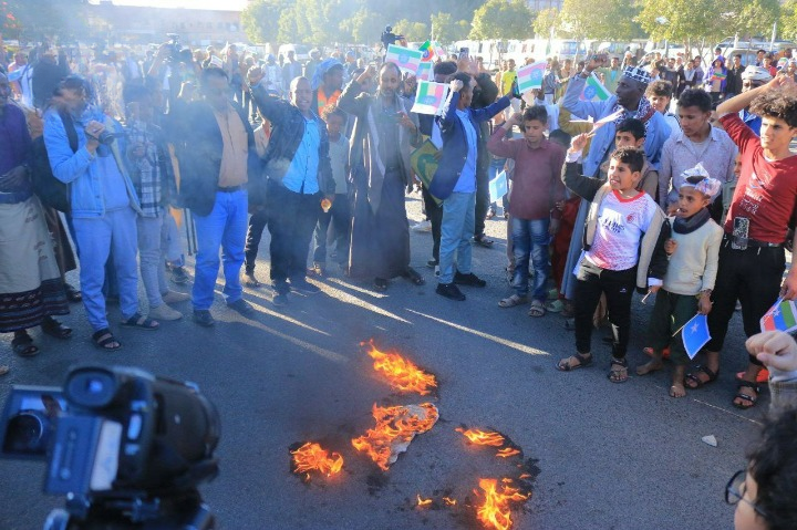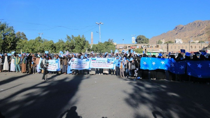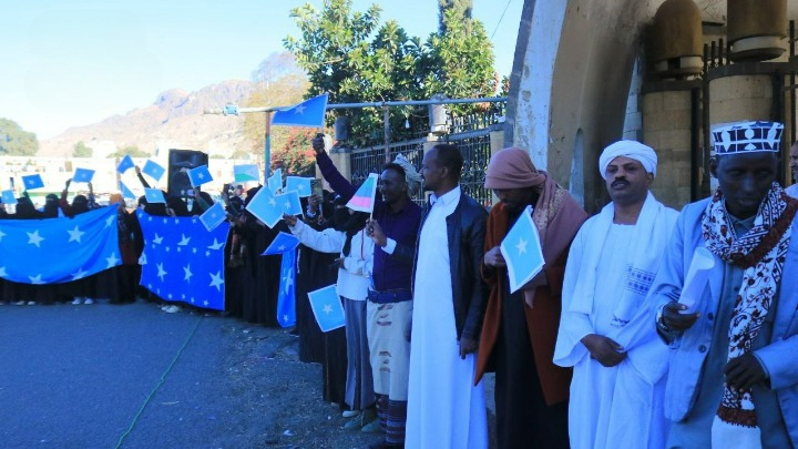 نظّم أبناء الجاليات الأفريقية في صنعاء وقفة احتجاجية للتنديد باعتراف إسرائيل بجزء من الصومال كدولة مستقلة، مؤكدين على وحدة الأراضي الصومالية ورفض أي مساس بسيادتها.