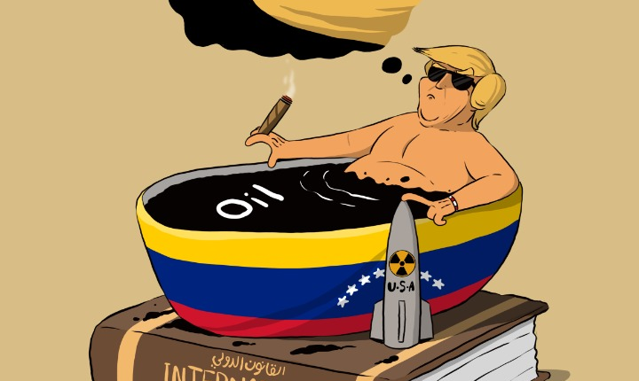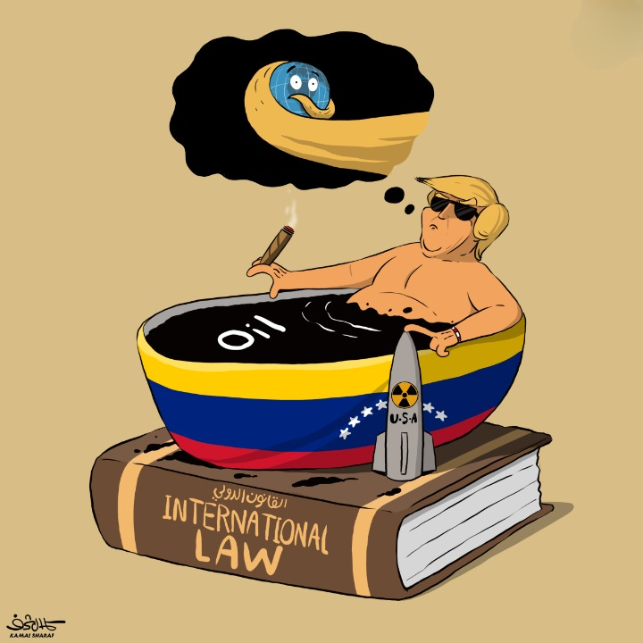 كاريكاتير ؛ لص النفط والقانون الدولي