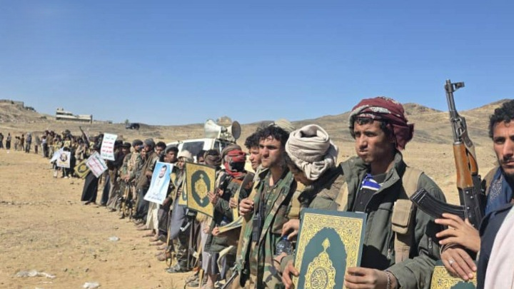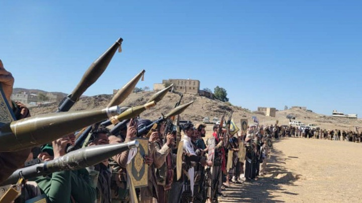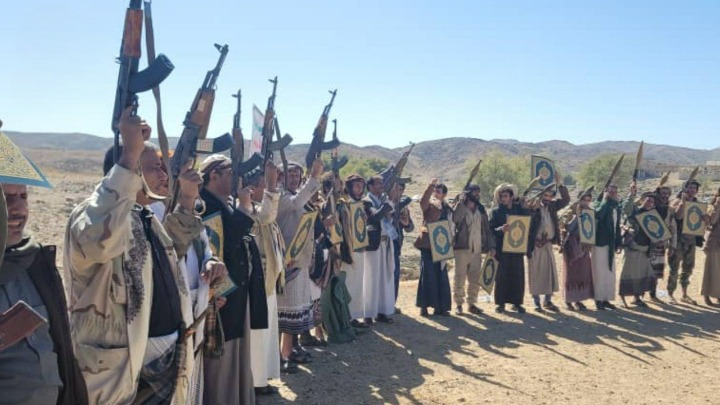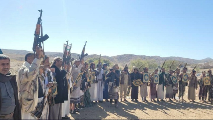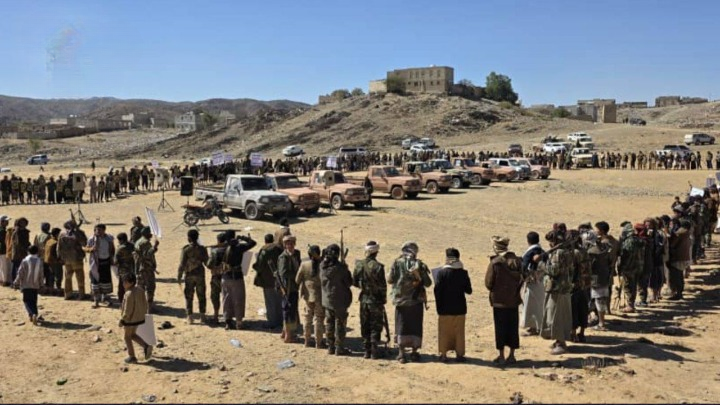 وقفة قبلية ومناورة عسكرية في مديرية الزاهر بمحافظة البيضاء نصرةً للقرآن ورفعًا للجاهزية