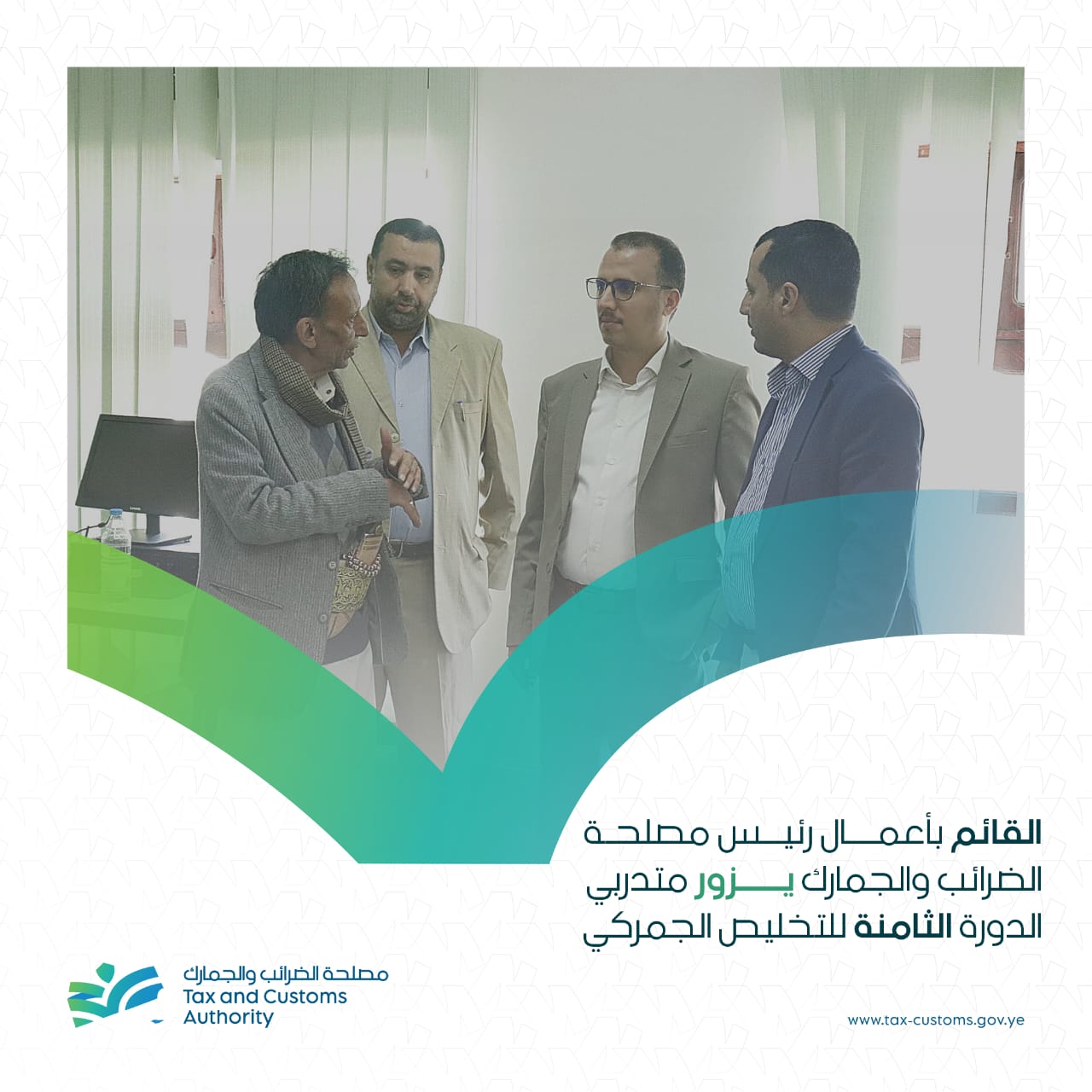 زار القائم بأعمال رئيس مصلحة الضرائب والجمارك الدكتور إبراهيم علي مهدي، اليوم، متدربي الدورة الثامنة للتخليص الجمركي، في إطار اهتمام قيادة المصلحة للتأهيل ورفع مستوى الكفاءة المهنية للعاملين في مجال التخليص الجمركي.