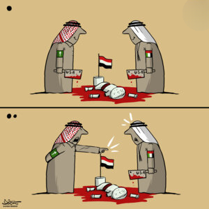 كاريكاتير ؛ السعودية تتهم الإمارات بجرائمهما في اليمن