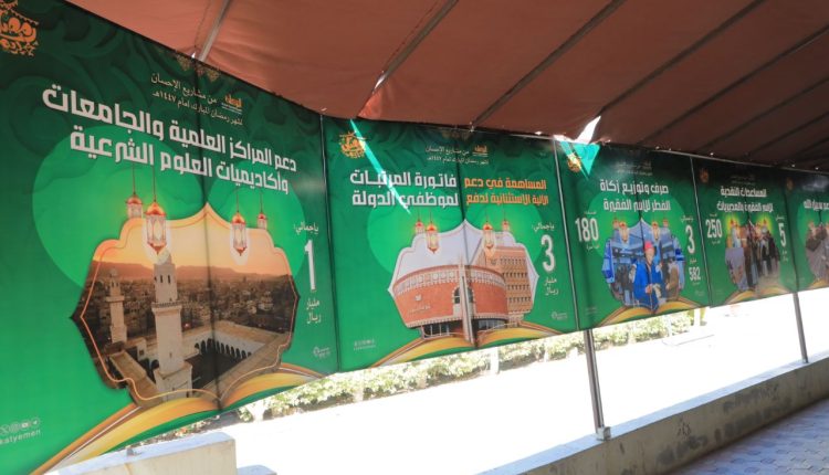 وأشار أبو نشطان إلى أن المجال الثاني من مشاريع الإحسان تضمن التعزيزات المركزية منها دعم الآلية الاستثنائية لدفع فاتورة المرتبات لموظفي الدولة بمبلغ 3 مليارات ريال، ودعم سبيل الله بستة مليارات ريال، ودعم المراكز العلمية والجامعات وأكاديميات العلوم الشرعية بتكلفة مليار ريال، ودعم المستشفى الجمهوري بالأمانة لتقديم الخدمات العلاجية المجانية للفقراء بإجمالي 900 مليون ريال.