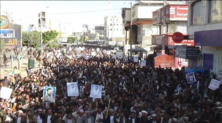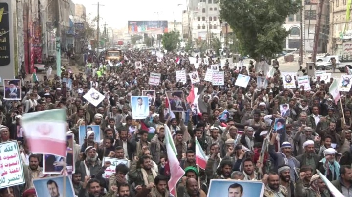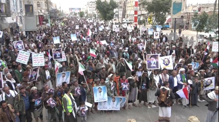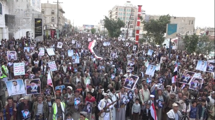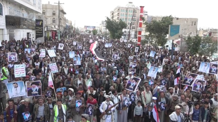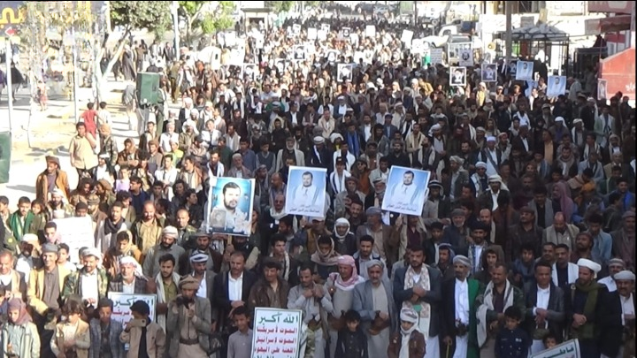 شهدت محافظة البيضاء اليوم مسيرات جماهيرية واسعة، رفع خلالها المشاركون العلمين اليمني والإيراني، تنديداً بالعدوان الأمريكي الصهيوني على إيران، وتأكيداً على التضامن الشعبي والرسمي مع الجمهورية الإسلامية الإيرانية.