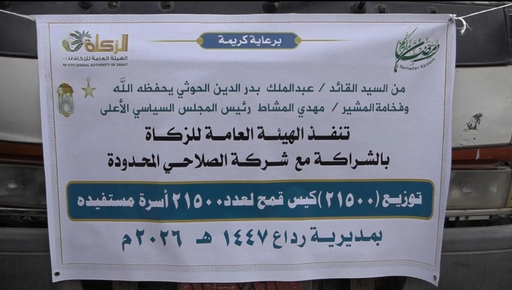 دشن مكتب الهيئة العامة للزكاة بمحافظة البيضاء اليوم حملة توزيع 21,500 كيس قمح للأسر المستفيدة بمدينة رداع، بالتعاون مع شركة الصلاحي المحدودة.
