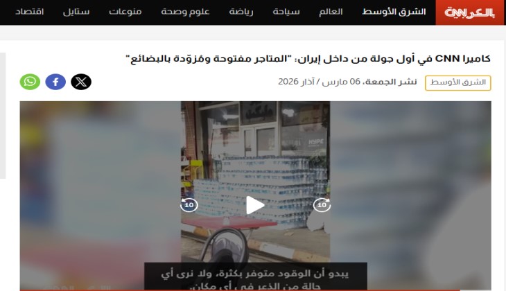 أفاد مراسل شبكة سي إن إن الأمريكية، فريدريك بليتغن، من قلب طهران، بأن الحياة اليومية في العاصمة تسير بوتيرة طبيعية رغم الضربات الجوية الأمريكية والإسرائيلية على إيران. وأكد المراسل أن التجول في شوارع العاصمة كشف عن وجود أضرار مادية واضحة، بما في ذلك مبانٍ متضررة ودخان يتصاعد من مواقع استهداف خزانات الوقود، إلى جانب نقاط تفتيش أمنية منتشرة، إلا أن غياب الفوضى أو انهيار السلطة كان واضحًا.