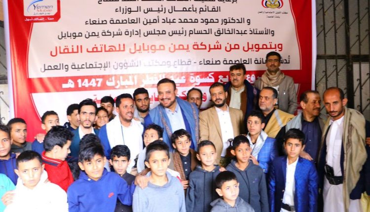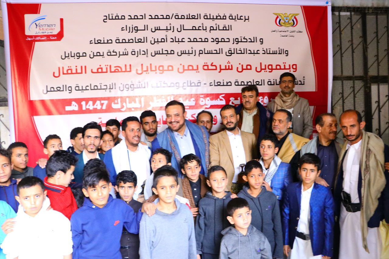أمين العاصمة ويمن موبايل يدشنان مبادرة كسوة العيد لنزلاء دور الرعاية في صنعاء