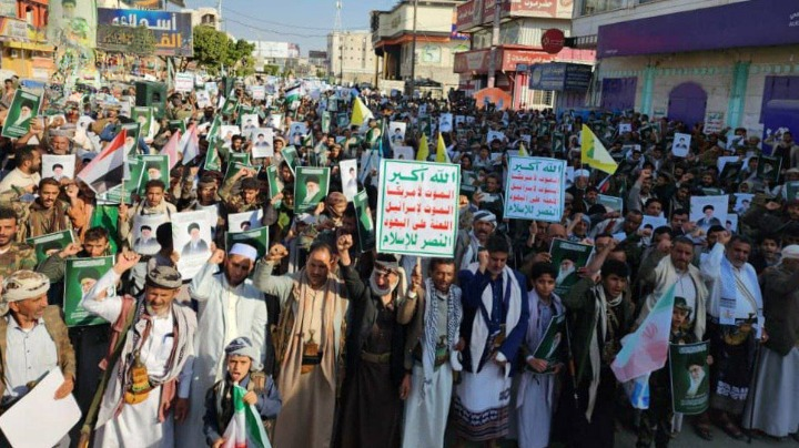 وشدد البيان الصادر عن المسيرات على أن هذه الفعاليات تأتي في مرحلة حساسة من الصراع مع الصهيونية العالمية وأذرعها الأمريكية، مؤكداً وقوف اليمن الكامل إلى جانب الأشقاء في إيران ولبنان والعراق، وتجديد العهد بالاستمرار في مواجهة العدوان حتى تحرير فلسطين والمسجد الأقصى.