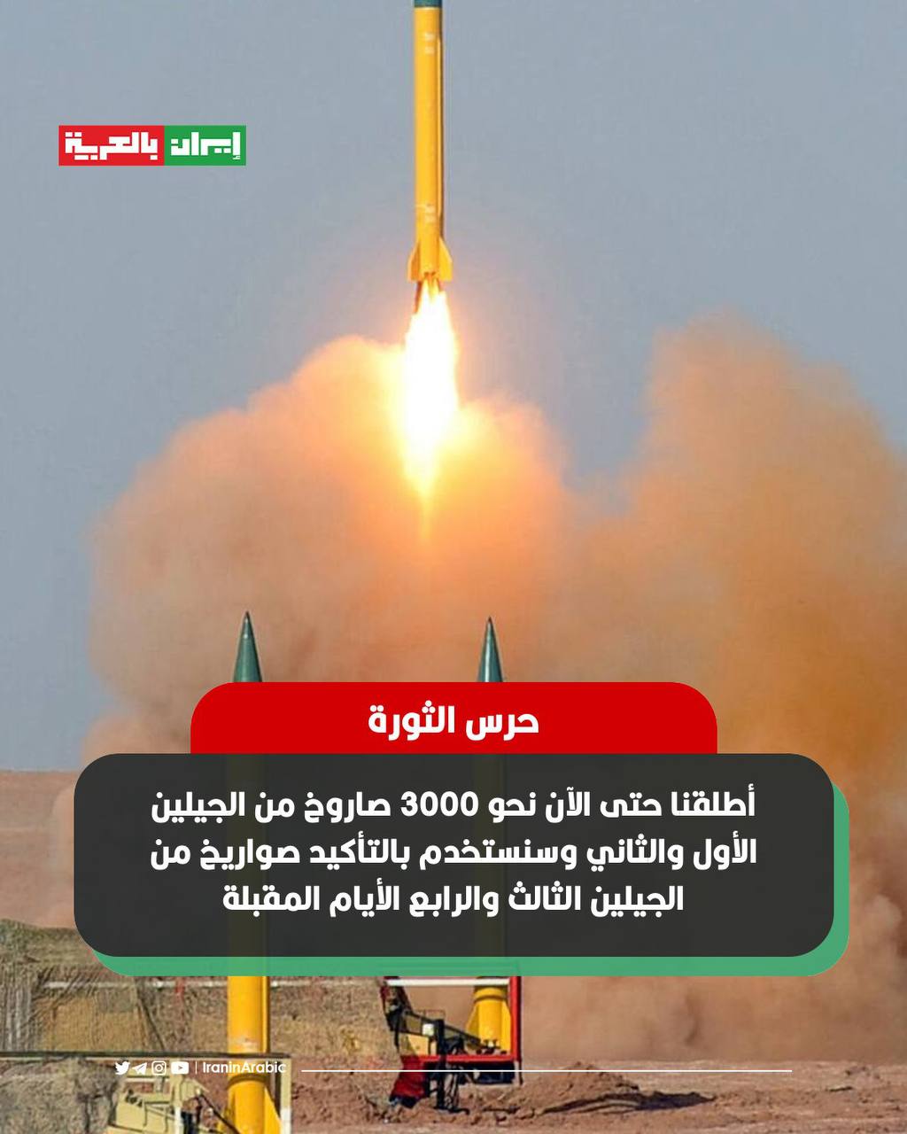 كما أكد البيان توجيه ضربات دقيقة إلى الأسطول البحري الخامس التابع للجيش الأمريكي، عبر صواريخ متوسطة المدى تعمل بالوقودين السائل والصلب.