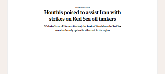 وأوضحت الصحيفة أن أي قيود تفرضها طهران على الملاحة في هرمز ستدفع بحركة نقل النفط الإقليمي إلى الاعتماد بشكل شبه كامل على مضيق باب المندب في البحر الأحمر، وهو ما يُعد خيارًا عالي المخاطر بالنسبة للقطع البحرية والناقلات الأمريكية.