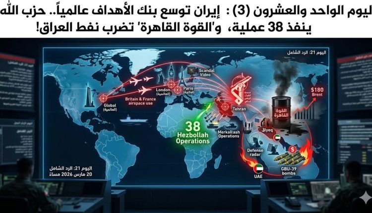 نهاية اليوم الـ21 : إيران توسع بنك الأهداف عالمياً.. حزب الله ينفذ 38 عملية، و”القوة القاهرة” تضرب نفط العراق!