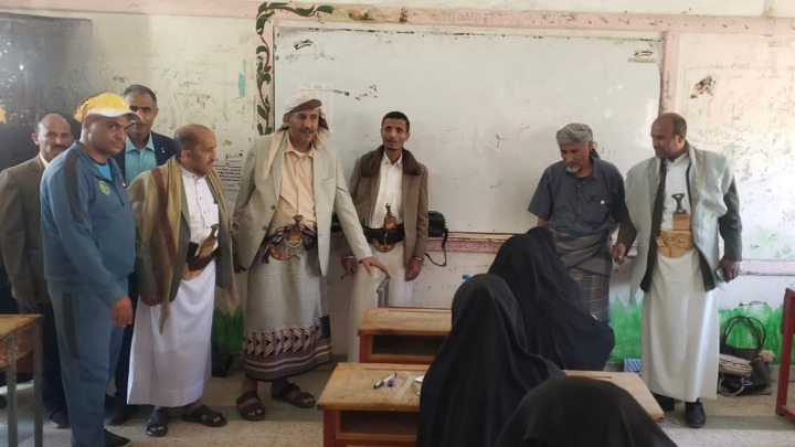 تفقد وكلاء محافظة البيضاء: عبدالله الجمالي، وزين الريامي، وأحمد السيقل وناصر العجي اليوم سير اختبارات الشهادة الثانوية العامة في مدينتي البيضاء ورداع ومديرية العرش.