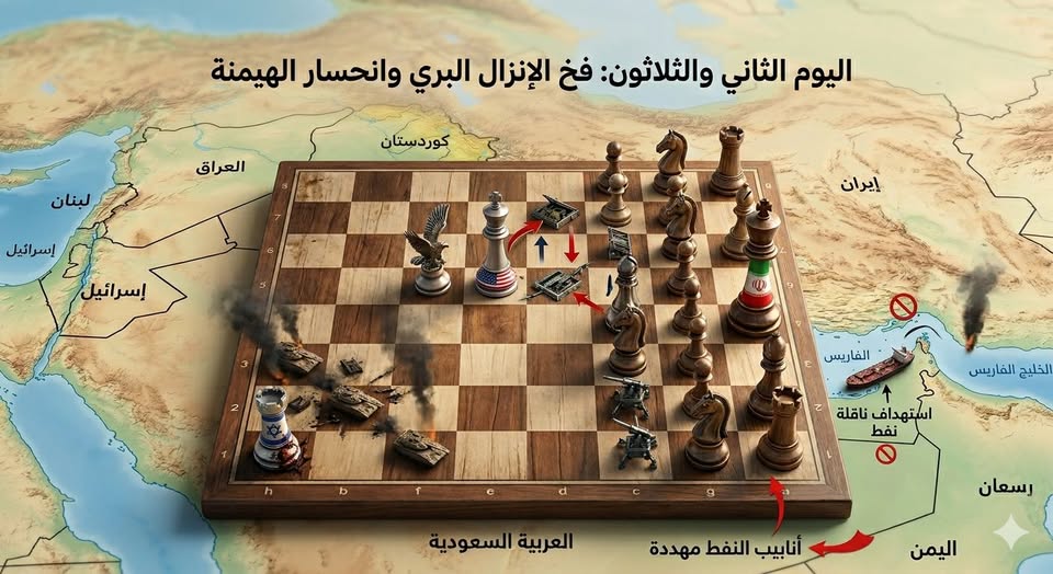 اليوم الثاني والثلاثون: “فخ الإنزال البري” ونهاية أوهام الهيمنة.. واشنطن تبحث عن نَفط إيران فوق رمال الأكراد، وإسرائيل تغرق في “مسلخ عيناثا”!