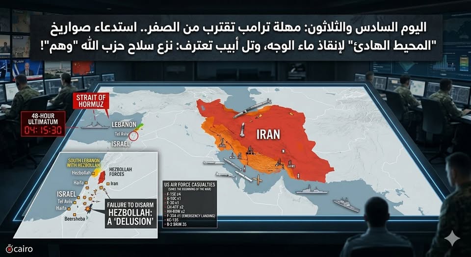 اليوم السادس والثلاثون: مهلة ترامب تقترب من الصفر.. استدعاء صواريخ “المحيط الهادئ” لإنقاذ ماء الوجه، وتل أبيب تعترف: نزع سلاح حزب الله “وهم”!