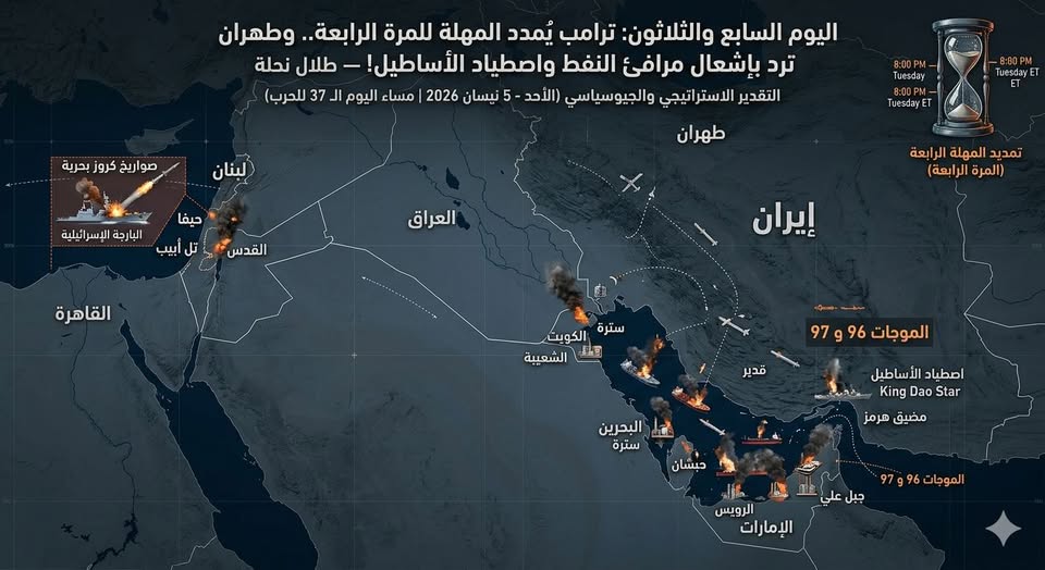 التقدير الاستراتيجي والجيوسياسي (الأحد - 5 نيسان 2026 | مساء أمس الـ 37 للحرب):