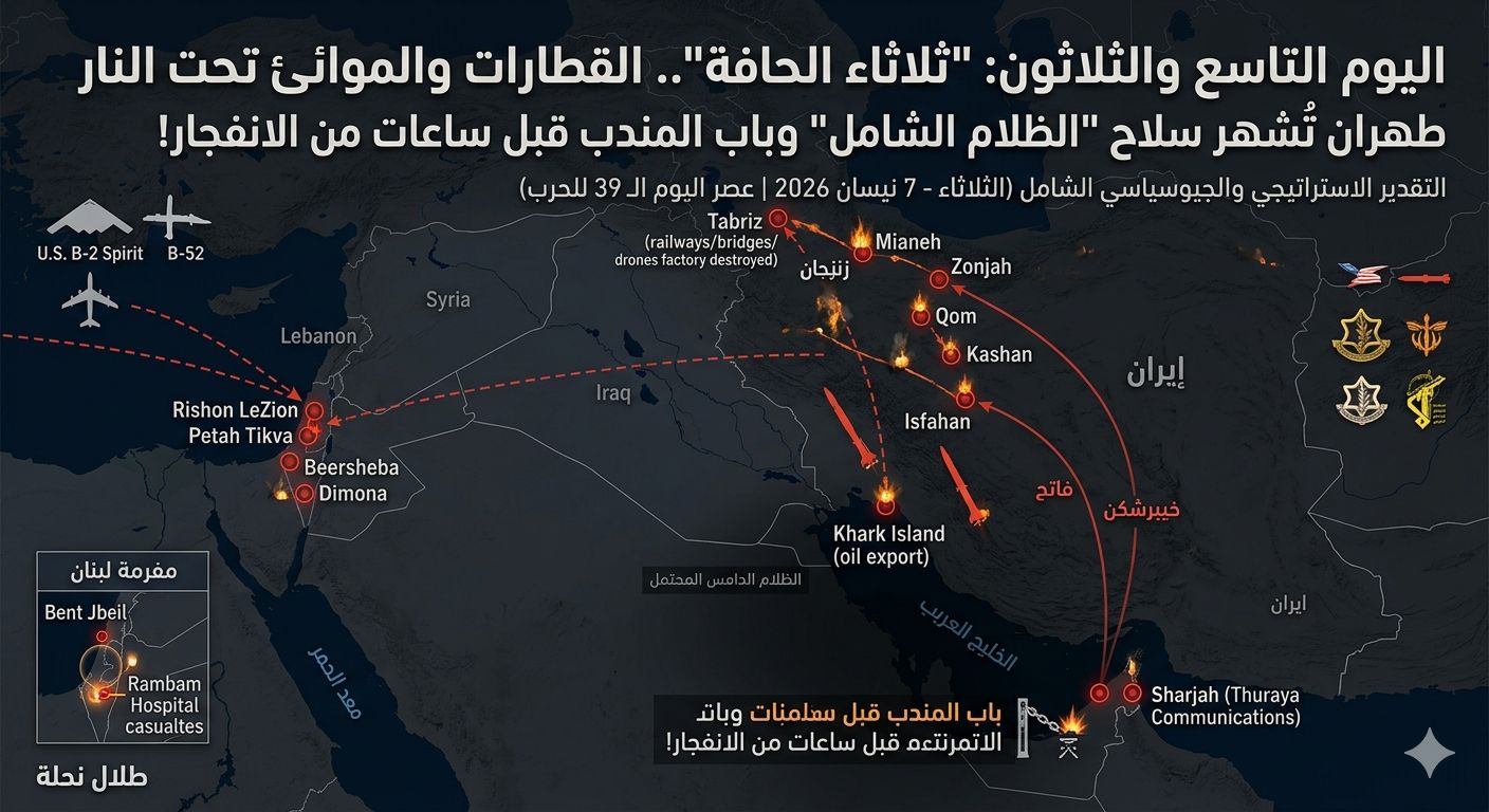 التقدير الاستراتيجي والجيوسياسي الشامل (الثلاثاء – 7 نيسان 2026 | عصر اليوم الـ 39 للحرب):