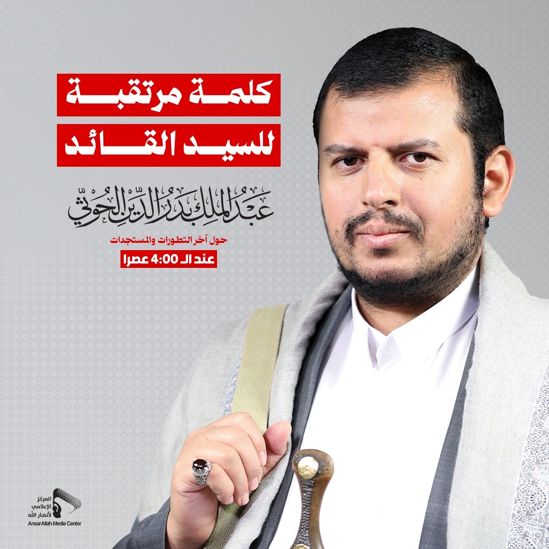ترقّب واسع لكلمة هامة للسيد عبدالملك الحوثي عصر اليوم حول آخر التطورات البيضاء نت | محلي من المرتقب أن يلقي السيد القائد عبدالملك بدر الدين الحوثي كلمة هامة عصر اليوم في تمام الساعة الرابعة، يتناول فيها أبرز المستجدات والتطورات على الساحة. #سيد_القول_والفعل Share FacebookTwitterGoogle+ReddItWhatsAppPinterestEmail