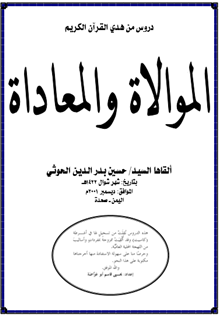 أثر الموالاة والمعاداة, الموالاة والمعاداة ليست فقط أن الإنسان يحب لأخيه كما يحب لنفسه [حالة نفسية فقط] من داخل, ويكره له مثلما يكره لنفسه. الموالاة معناها: المعية, تشعر بأنك في هذا الجانب تؤيد هذا الجانب متجه إلى هذا الجانب, هذه هي الموالاة سواء كانت موالاة لأولياء الله أو موالاة لأعداء الله, الموالاة معناها: المعية, المعية في الموقف, المعية في الرأي, المعية في التوجه, المعية في النظرة, هذه هي الموالاة.