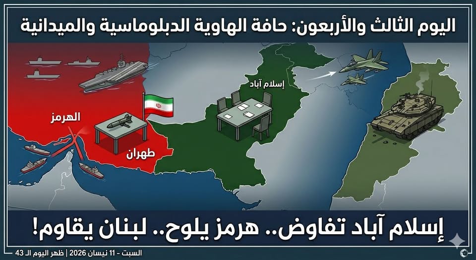 التقدير الاستراتيجي والجيوسياسي (السبت – 11 نيسان 2026 | ظهر اليوم الـ 43 للحرب):