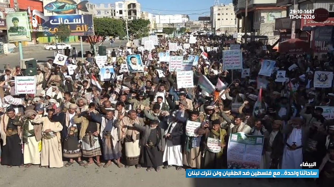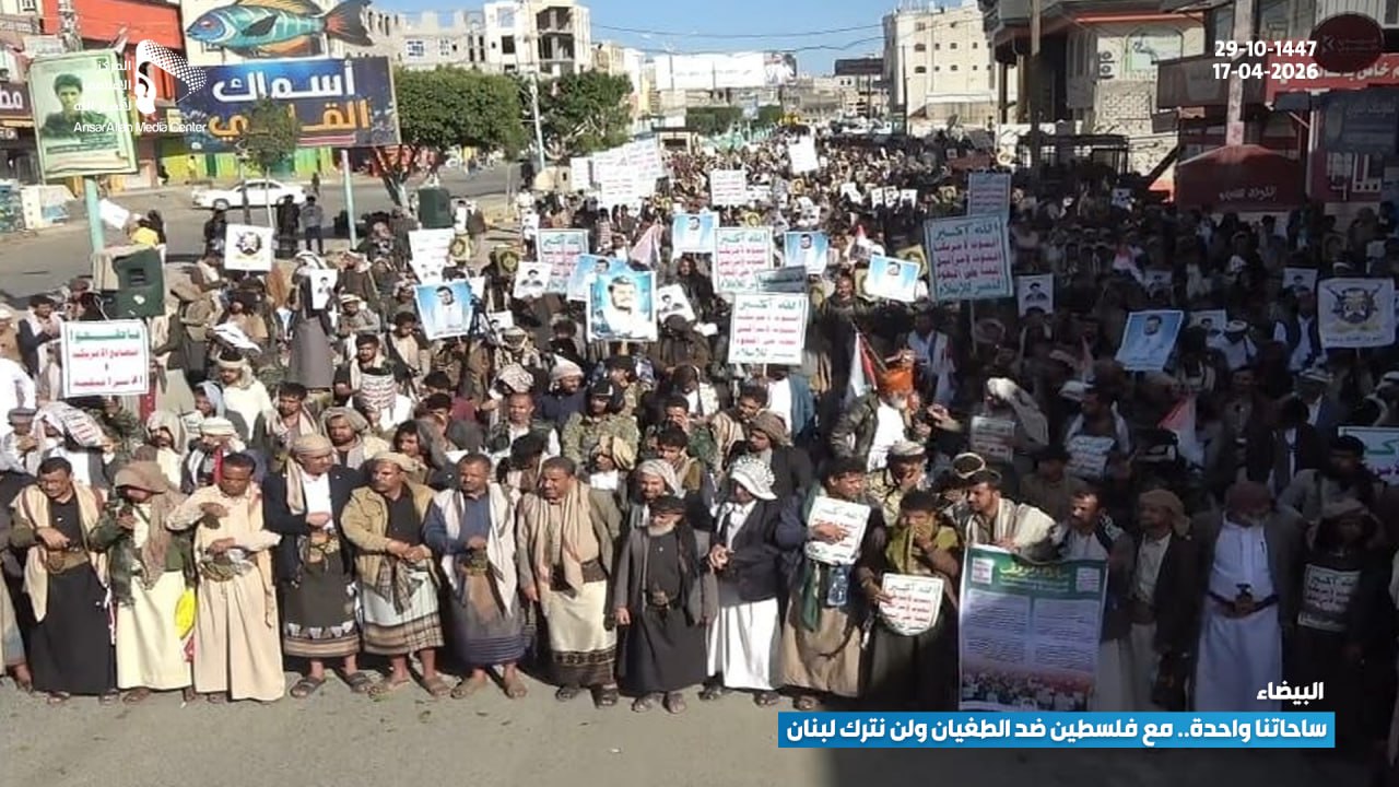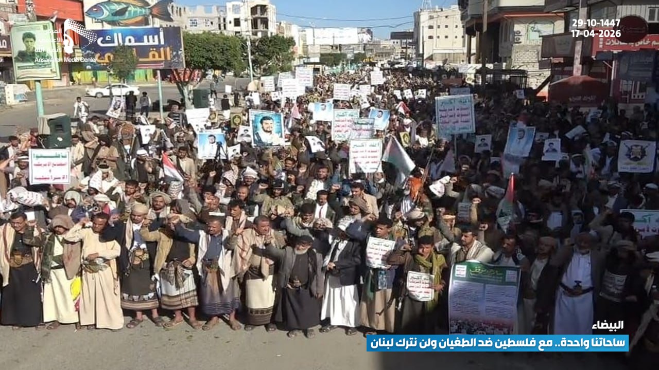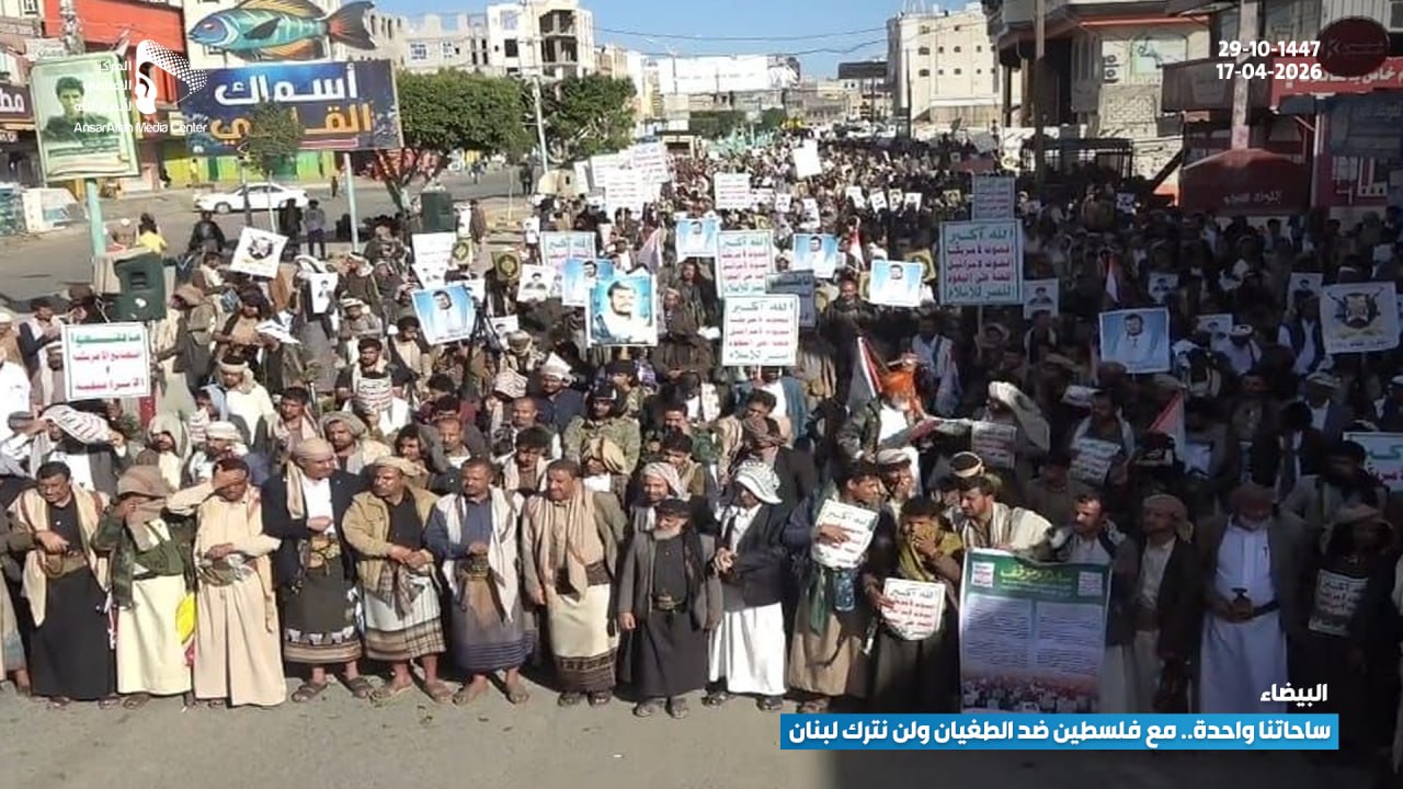 استشعارًا للمسؤولية ووعيًا بخطورة المرحلة، شهدت مدينة البيضاء حشودًا جماهيرية كبيرة في مسيرة بعنوان: “ساحاتنا واحدة.. مع فلسطين ضد الطغيان ولن نترك لبنان”، تأكيدًا على ثبات الموقف ووحدة الصف.