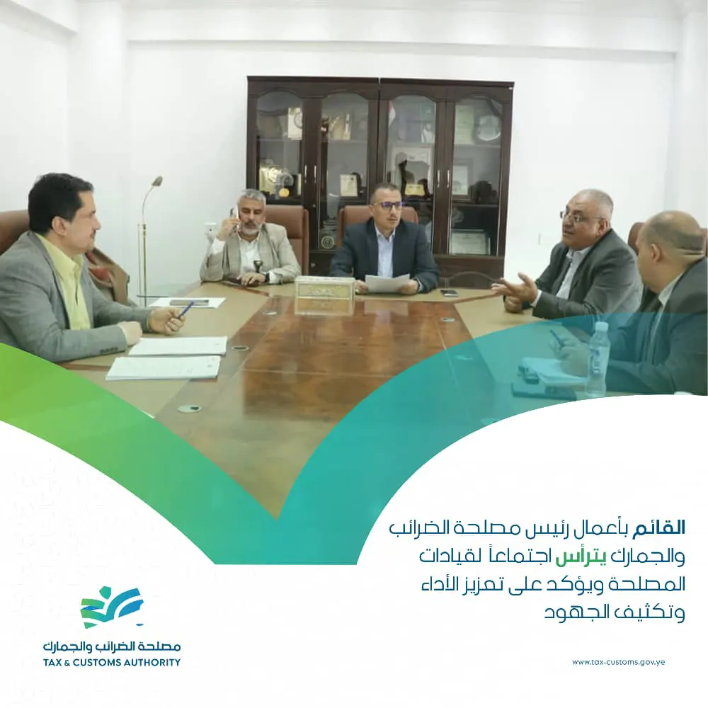 القائم بأعمال رئيس مصلحة الضرائب والجمارك يترأس اجتماعًا لقيادات المصلحة ويؤكد على تعزيز الأداء وتكثيف الجهود