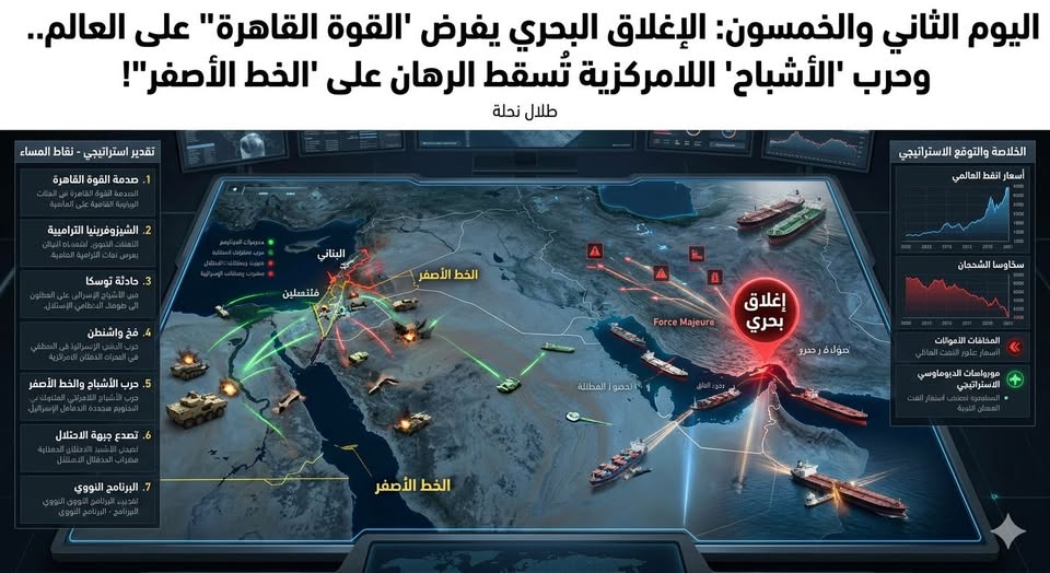 اليوم الثاني والخمسون: الإغلاق البحري يفرض “القوة القاهرة” على العالم.. وحرب “الأشباح” اللامركزية تُسقط الرهان على “الخط الأصفر”!