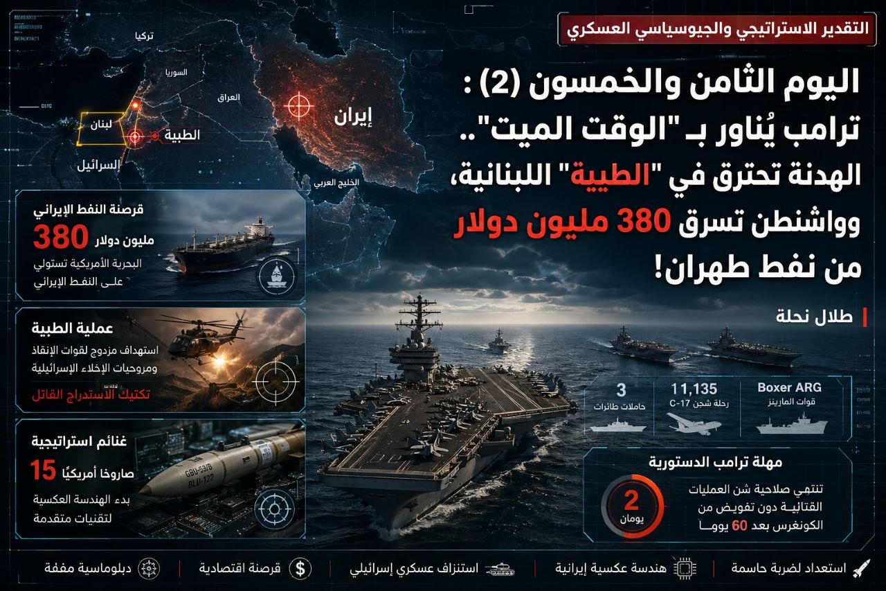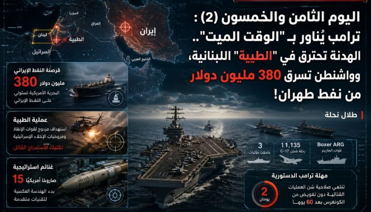 اليوم الثامن والخمسون (2) : ترامب يُناور بـ “الوقت الميت”.. الهدنة تحترق في “الطيبة” اللبنانية، وواشنطن تسرق 380 مليون دولار من نفط طهران!